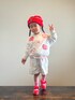 スウェットの裾と首元袖下からチラッと覗くボーダーでオシャレ感も出しつつ、 ハッピーコーデの出来上がり!