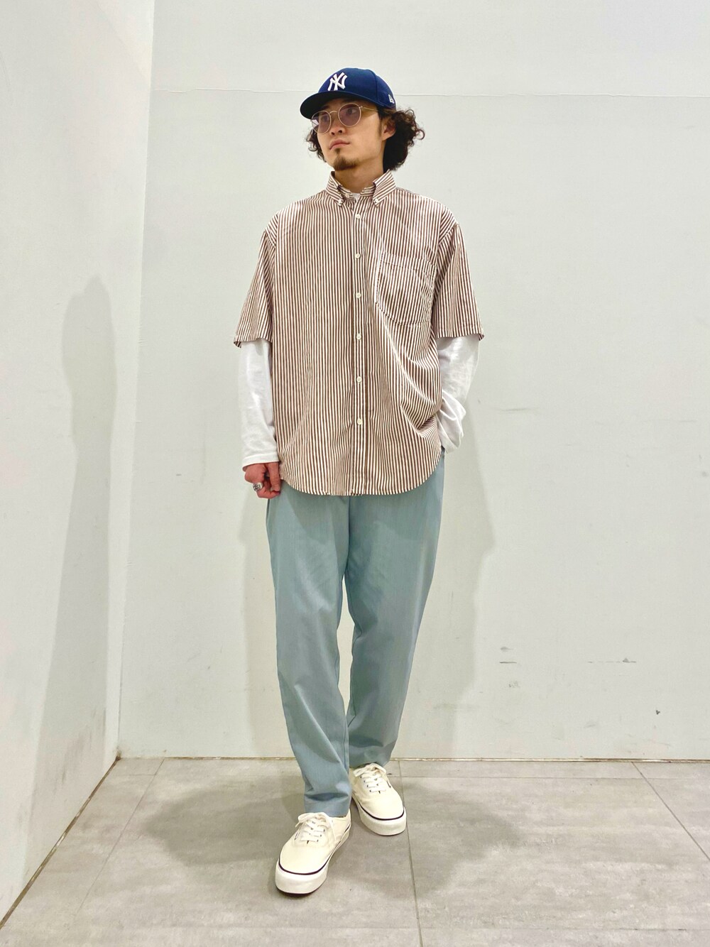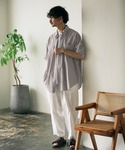 ストライプ柄と無地のカラーリングでまとめたオーバーサイズボタンダウンシャツ。 キレイめな生地をカジュアル縫製で仕上げ、気軽に上から羽織れるオーバーシャツにしています。 無地生地に関しては刷毛目という味わい深く、1年を通して着られるものとして最も選ばれる素材を使用しています。 シルエットは丈とバストはたっぷりとり、肩を落としすぎない様にしています。 身長:170 普段サイズ:M〜L 着用サイズ:M サイズ感:程よくゆったりとしている 着心地:サラッとした質感で重ね着もしやすく、春夏には間違いないアイテムです。
