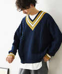 大好評のrelumeの”洗える2枚コーデセット”のよりオーバーサイズのチルデンニットが登場! チルデンニットの魅力は、トラッド感、スポーツ感などのムードあるネックや裾部分にあるライン。 今回はVネック型で身頃と袖にケーブル編みのラインを施し、くどすぎず・単調過ぎない、スタイリングに取り入れやすいアイテムに仕上げてます。 かなりゆったりとしたオーバーシルエットですが、丈が短めなので、だらしなくならないよう計算されています。 存在感のあるアイテムなのでAWシーズンはインナーとしても活躍してくれる1着です。 身長:170 体型:標準(やや肩幅広め) 普段サイズ:M〜L 着用サイズ:ニット L パンツ M サイズ感:ゆったりとしたサイズ感でリラックス感がある! 着心地:柔らかいポリエステル素材で着やすく、レイヤードしやすい!! 少しでも参考になりましたら、フォローしていただけると嬉しいです。