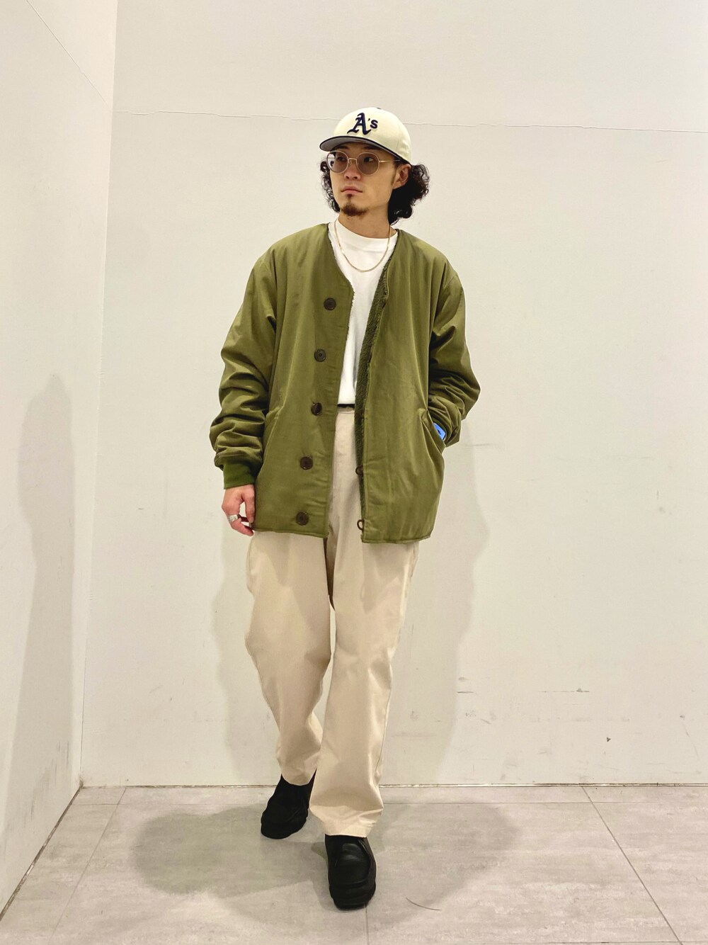 kobaのミリタリージャケット「【ARMY TWILL/アーミーツイル】別注 リバーシブル ノーカラーブルゾン」を使ったコーディネート