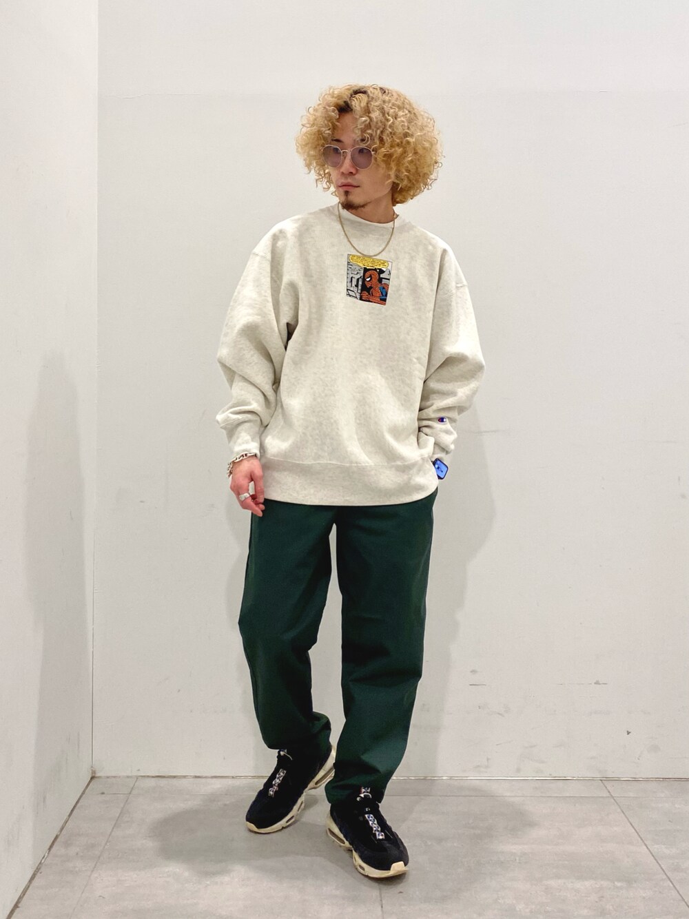 kobaのスウェット「【SPIDER-MAN】CHAMPION 別注リバースウィーブ クルーネックスウェット」を使ったコーディネート