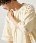 袖と裾にがレース仕様で主張し過ぎないアクセントがいい!! 総柄のパンツと合わせてカジュアルスタイル! 身長:170 体型:標準(やや肩幅広め) 普段サイズ:M〜L 着用サイズ:トップス L パンツ M サイズ感:ゆったりとしたビッグシルエットでリラックス感がある! パンツはスッキリとしたシルエットで綺麗目な印象に! 着心地:コットンのサラッとした質感! パンツは柔らかく、肌あたりが良い! 少しでも参考になりましたら、フォローしていただけると嬉しいです。
