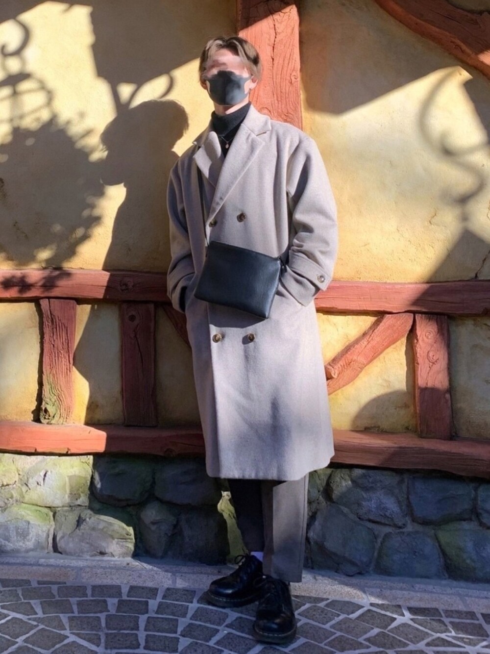 kook1のチェスターコート「ウールブレンドダブルチェスターコート」を使ったコーディネート