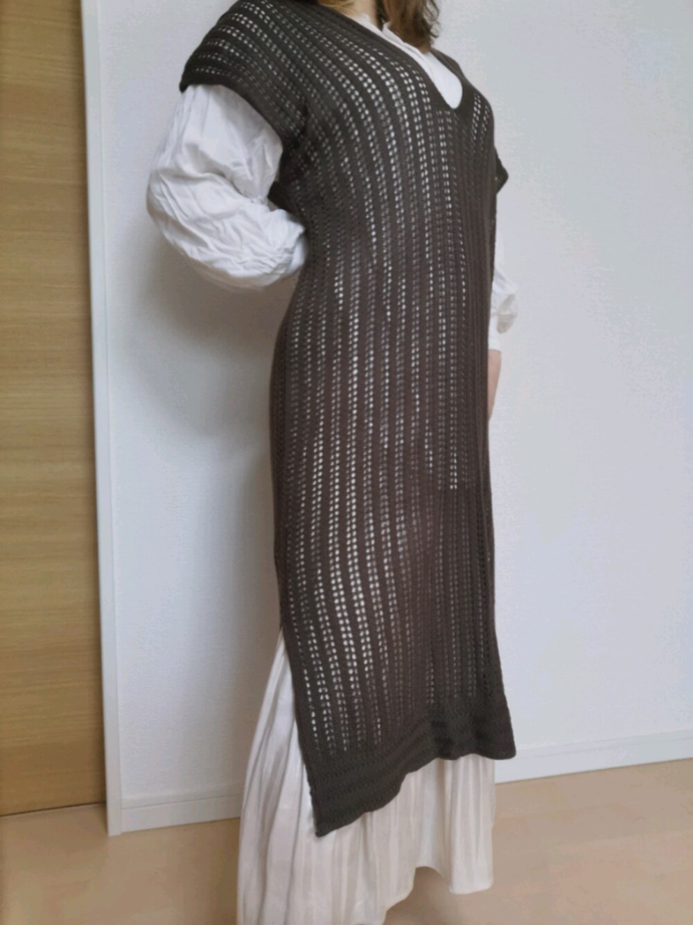 こーこのワンピース「両Vネック透かし編みノースリーブワンピース」を使ったコーディネート