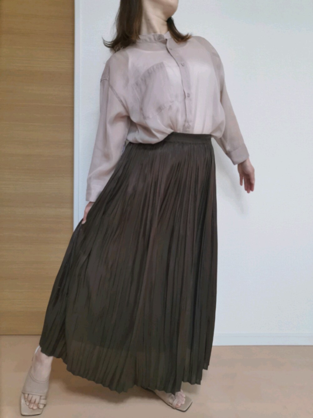 こーこのスカート「メタリックワッシャープリーツ フレアスカート【WEB限定サイズ】」を使ったコーディネート