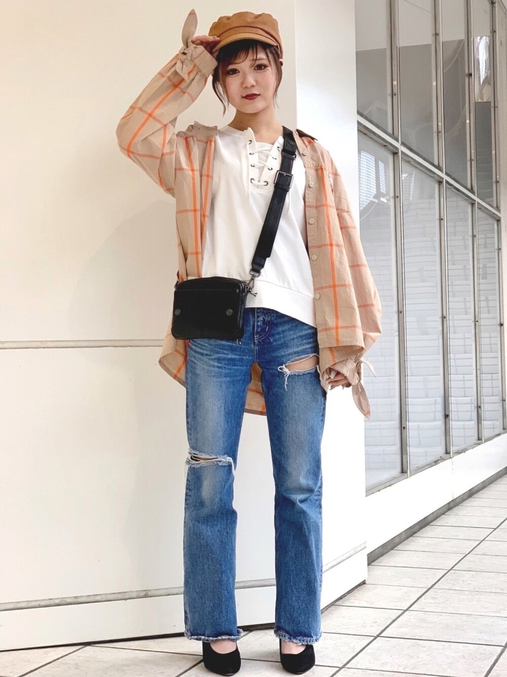 ayuのシャツ/ブラウス「リボン チェックシャツ/ RIBBON CHECK SHIRT」を使ったコーディネート