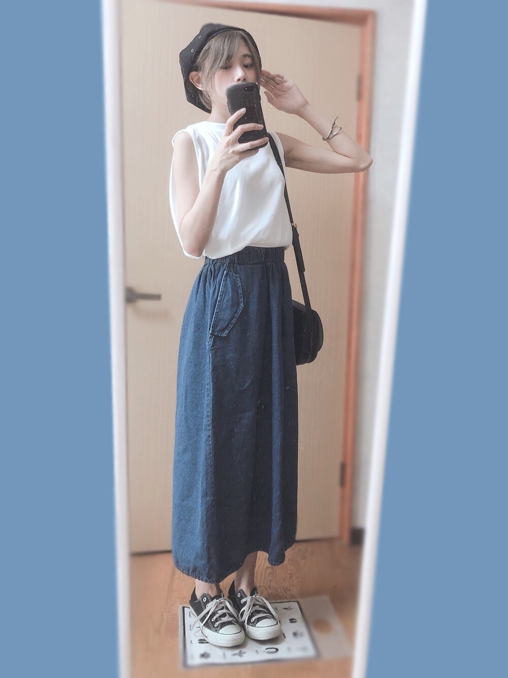 756.のデニムスカート「バックスリットデニムフレアスカート」を使ったコーディネート