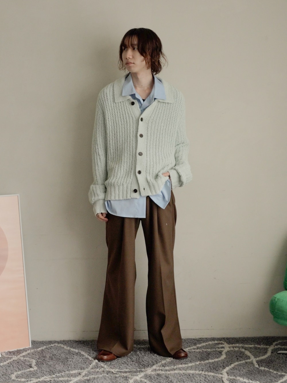ぐりのカーディガン/ボレロ「Ribbon yarn collar cardigan/リボンヤーンカラーカーディガン」を使ったコーディネート
