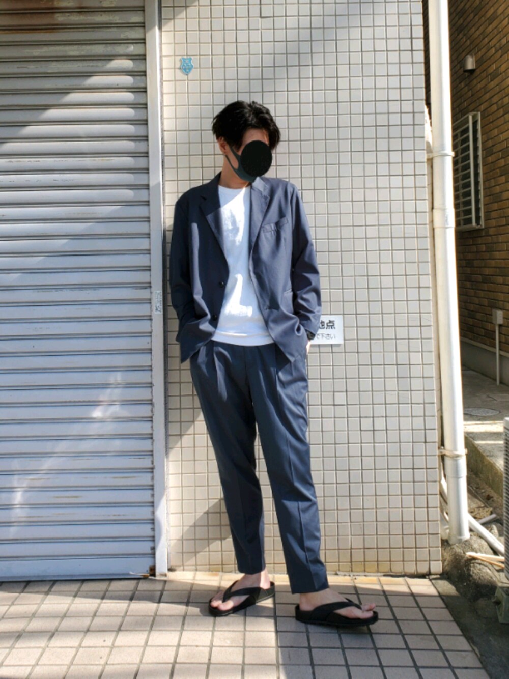 セットアップ×サンダル 大好きな組み合わせ👴 知らんがな グリーンのセットアップのなのにネイビーにしか見えん! Maybeネイビー ワハハ