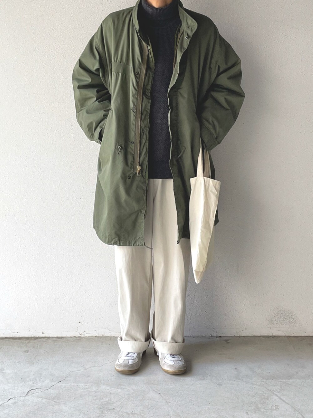 やっぱり冬はm-65に限りますね。 あったかいし、おしゃれだし。 ユニクロのパンツはワイドフィットカーブツイルジャージパンツです。XL