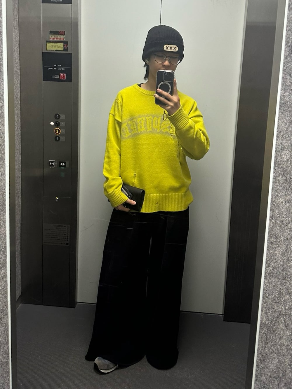 黄色初チャレンジ🟡 ニット帽被ればなんとかいける😛 あったかくなってきたから、薄手のニット一枚で過ごせるのまじで嬉しい👍