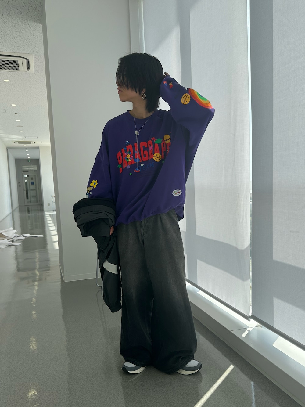 Kのスウェット「【Paragraph/パラグラフ】PARAGRAPH_NO.43 /Happy Logo Sweat/ハッピーロゴプルオーバースウェット」を使ったコーディネート
