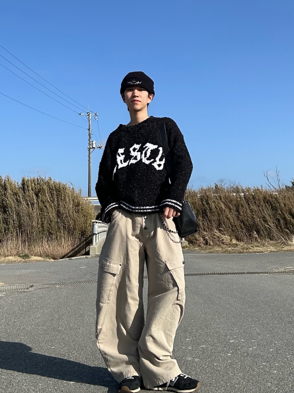 MSG/リボンヤーングラフィックニット 着心地がめっちゃいい👍 sedacle/ボタンフライダックカーブパンツ ボタンフライ+カーブシルエットが今っぽい 両サイドのカーゴポケットが斜めなのもいいよね