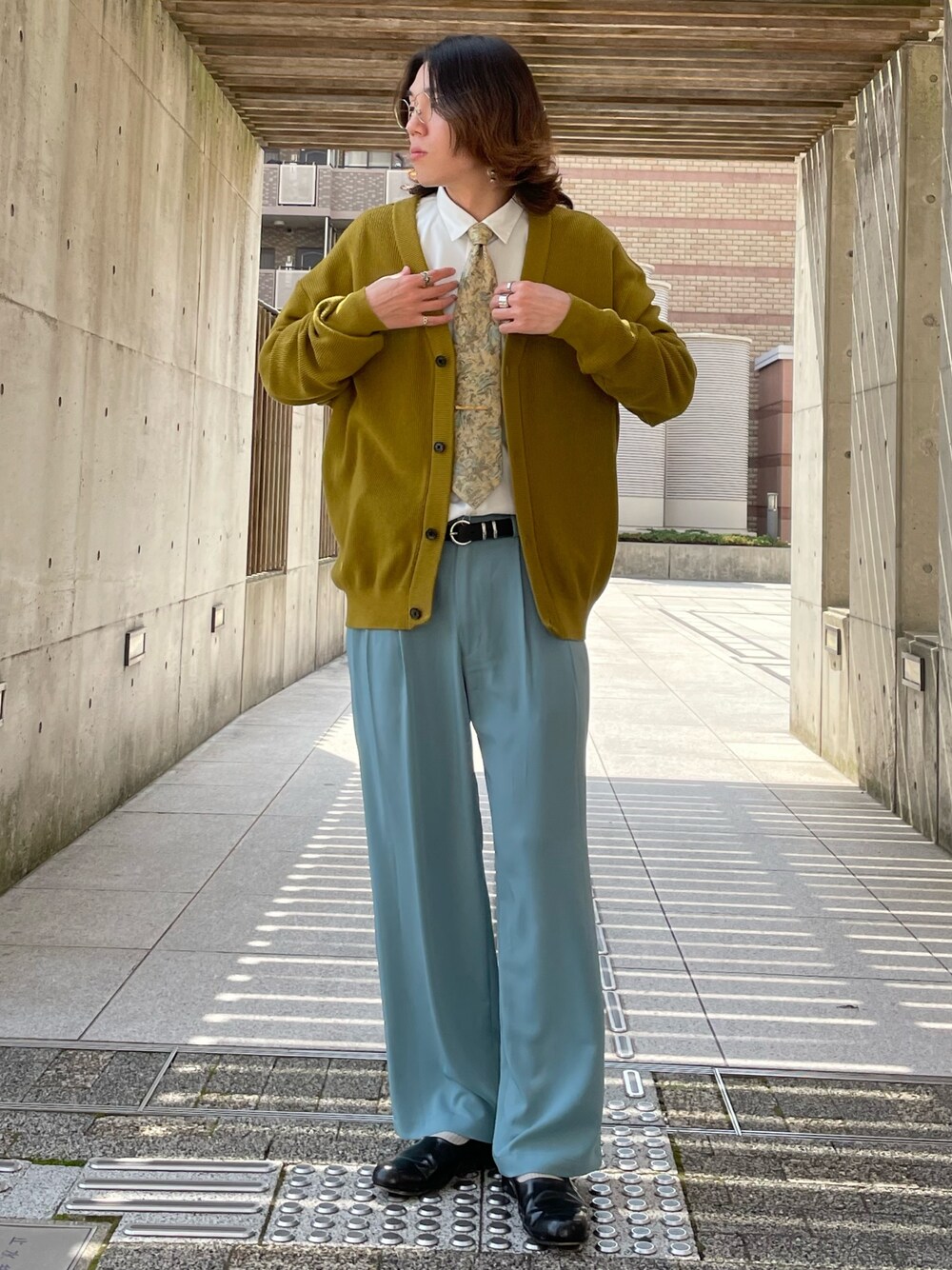 こんにちは! 今回はシンプルなスタイリングに色で遊んでみました。 春らしい色のイエローに淡いグリーンでさらに春らしくお使いいただけます! 一見、合わせずらいと思われがちですが着てみると綺麗に合わせることができますね! 是非、参考にしてください!