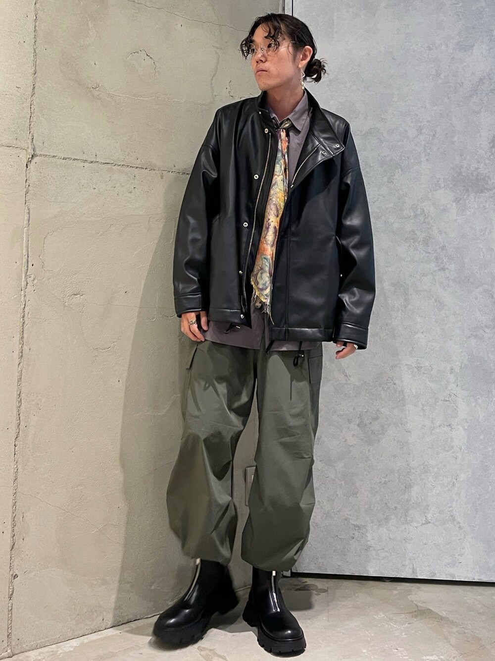 ko-ta(阿倍野キューズモール)のライダースジャケット「◆シンセティックレザーショートモッズブルゾン」を使ったコーディネート