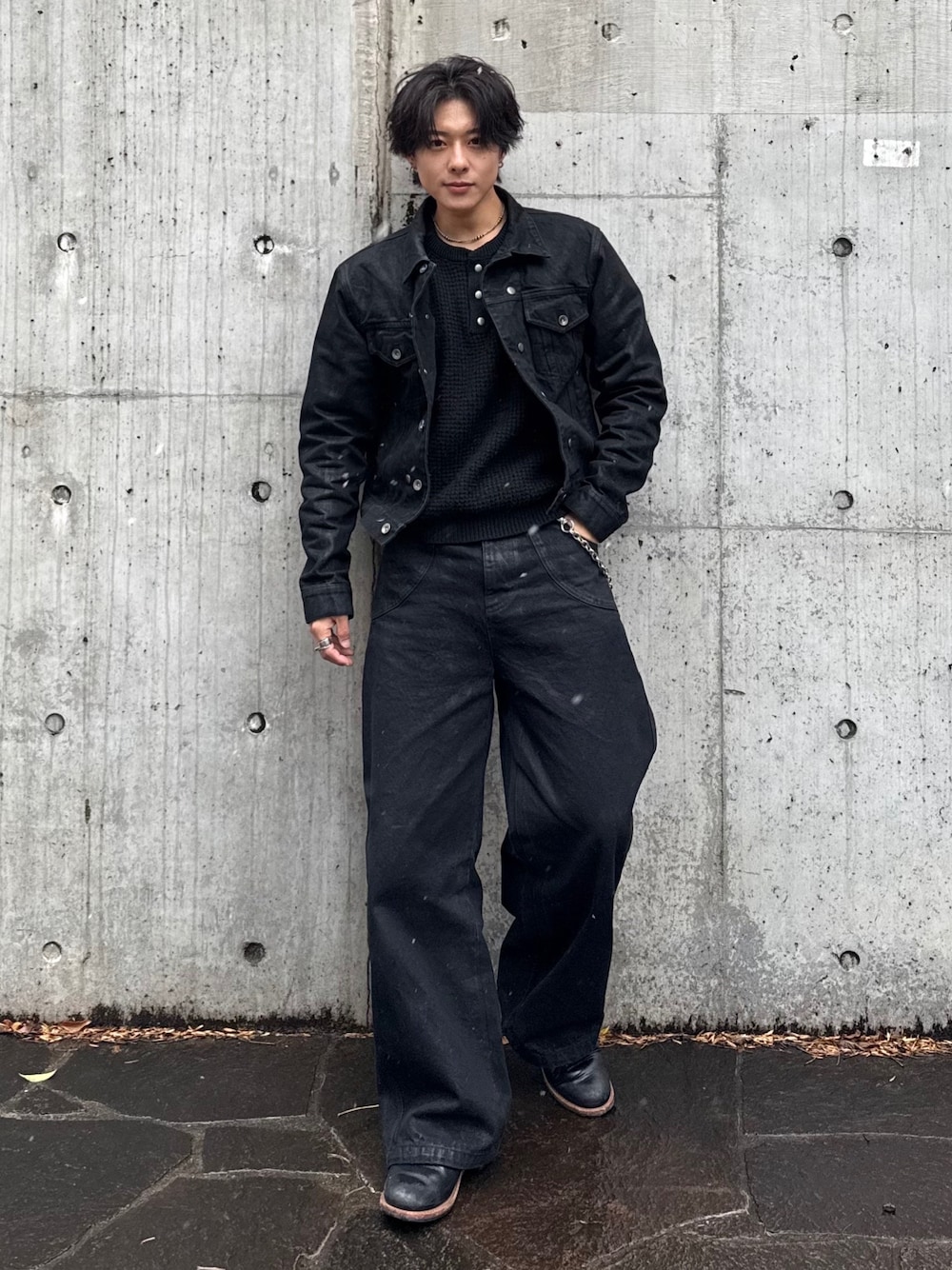 オールブラックやからトップスを変えたら いくらでもコーデ組める 小物でアクセントも🎯