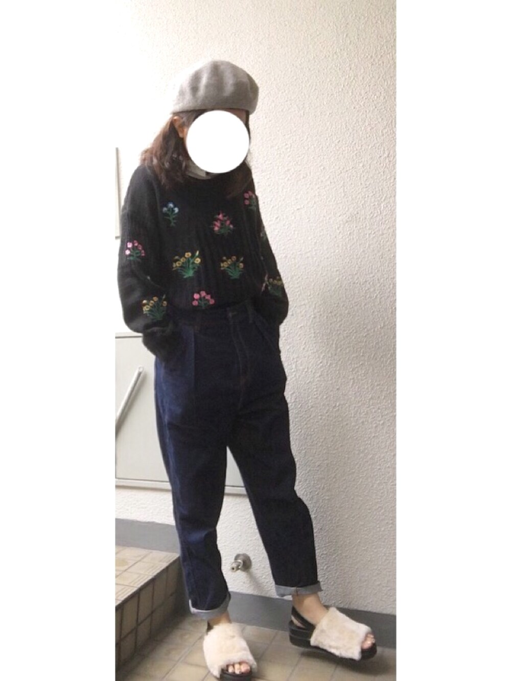 こんにちは〜〜🌞 今日のコーデはこの前の刺繍ニットの色違いの黒を着てみました😌 そして去年買ってほとんど使わなかったベレー帽をやっと被りました☺️(笑) GUのファーサンダルはとても楽ちんで可愛くて全色買っておけばよかったと思うくらいとってもお気に入りです◎ この前通販でずーっと欲しかったものを注文したので届くのが楽しみです😻 届いたらまた紹介します! では👋👋👋