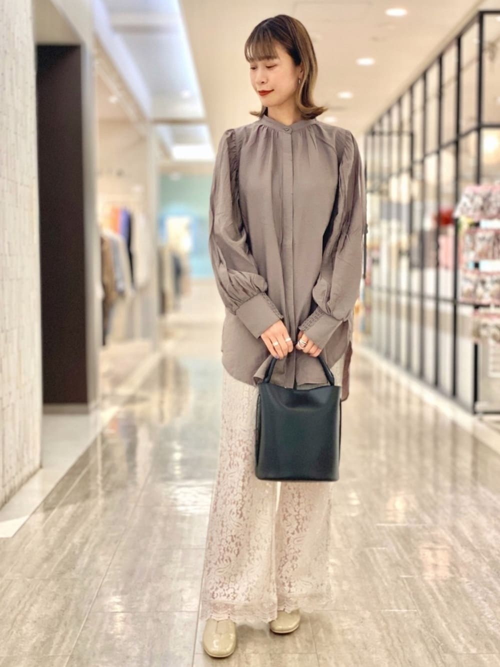 ボリュームスリーブブラウスを使ったコーディネートです☺︎ 袖にボリュームがしっかりあり、トレンド感たっぷりのブラウスです! 長めの丈なので、デザインのあるボトムと合わせたり、羽織として使っていただくのもおすすめです♪