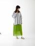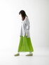 グリーンカラーが目を引くプリーツスカートです☺️✨ アイラインのすっきりシルエットなので、トップスはゆったりしたスキッパーニットを合わせました🎶 足元も程よく透け感があるので、これからの季節にぴったりな明るく軽い印象で合わせて頂けます😊