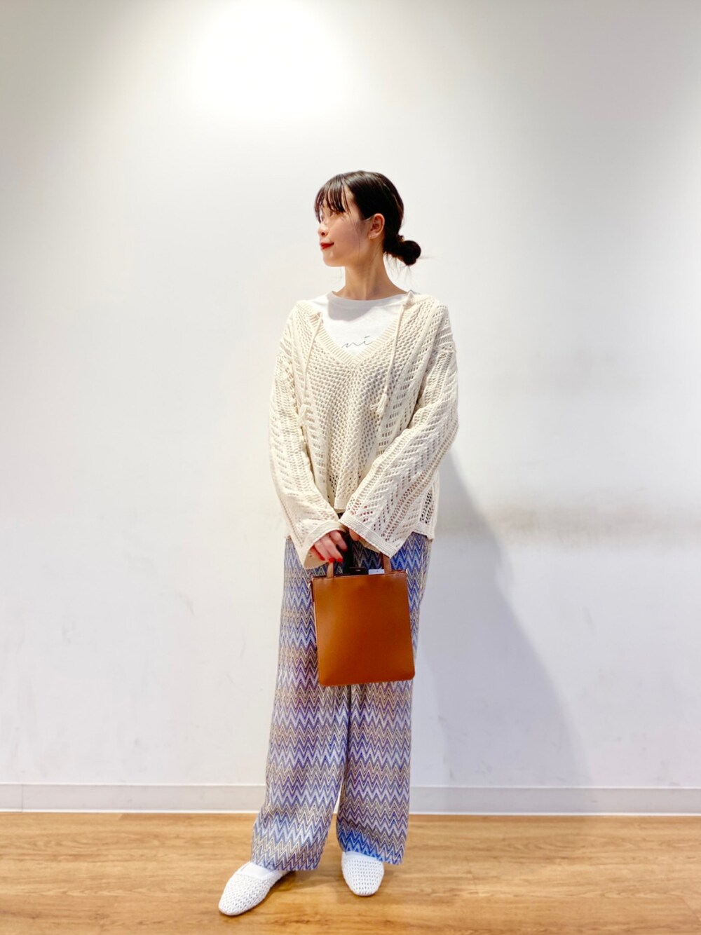 幾何学柄のジャガードパンツです😊 足元に透け感のあるこれからの季節にぴったりの素材感のパンツです! すっきり綺麗めシルエットなので、カジュアルすぎず、ワンピースなどとのレイヤードにもぴったりです☺️🎶