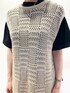 着回し力の高い、ロングのニットベストです😊✨ 今回はTシャツと合わせてスタイリングしてみました! 編み地がブロック柄になっているのもポイントです☺️🎶 足元にスリットも入っているので、動きやすく、レイヤードもしやすいデザインになってます😳