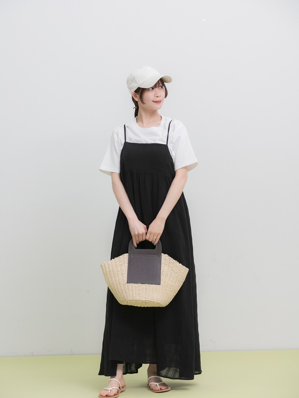 バッグデザインがとってもかわいいキャミワンピースです☺️💓 気温に合わせて幅広く着回しできるキャミワンピースは気温の変わりやすい今の時期にぴったりです✨ 足元は程よく透け感があり、チェック柄のデザインが見せれるのもポイントです✨