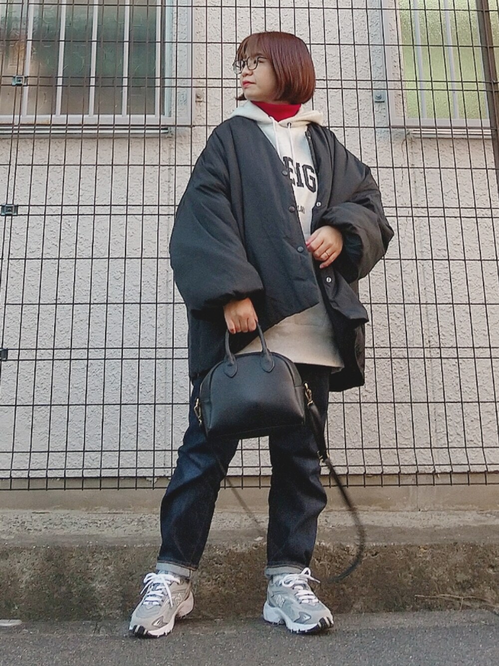 yakkoのブルゾン「【UNSPARE/アンスペア】中綿ノーカラーブルゾン」を使ったコーディネート