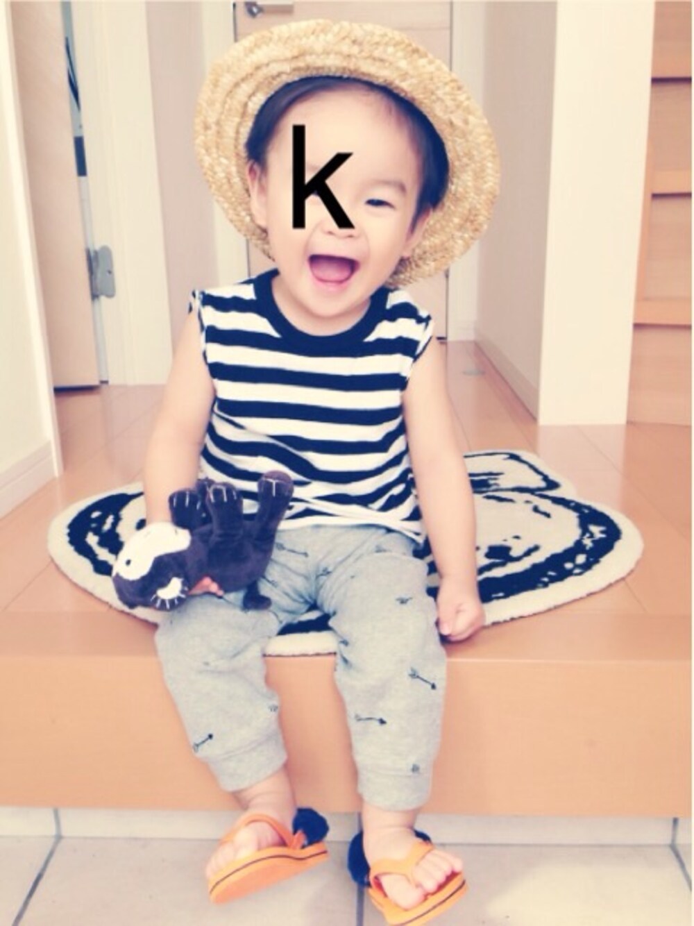 トップスは、袖をちょっきんして、 ノースリーブにリメイク♡ ハットも、裾上げシートで紐をリメイク! 裾上げシートだとアイロンで止めれるから、 おすすめです♡