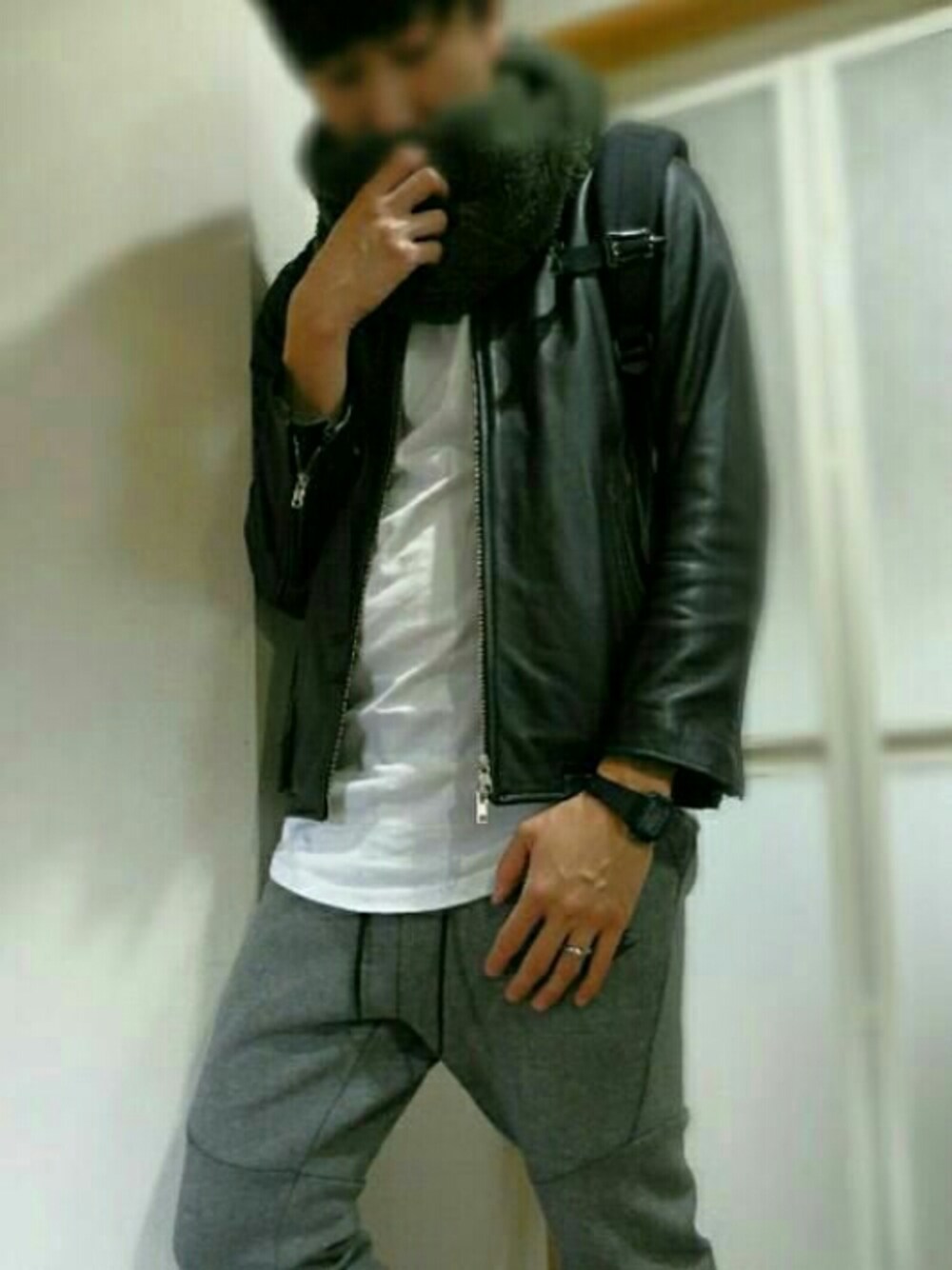 コペンのライダースジャケット「ノーカラーレザーライダース(HARE)」を使ったコーディネート