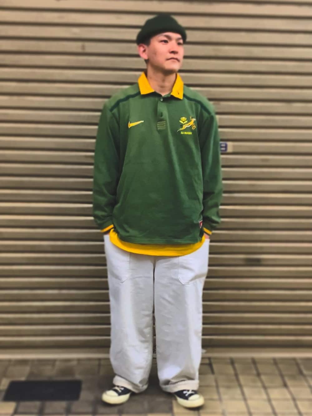 おはようございます😃 閲覧ありがとうございます。 ラガーシャツコーデです。 NIKEの南アフリカ代表のシャツに、 ニコアンドのオーバーオールを中にきて ct70sで合わせました。 色味がすごい良いです。 古着っぽさを出せました。 もしよろしければ いいね👍フォロー🕴 よろしくお願い致します🤲