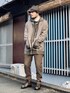 11月13日 昼 15/6℃ フード効果 パーカー(服オタクは外国に倣ってフーディと言う)ってフードの立ち方について語られることが多いですが、錯視による小顔効果を狙うならフードは立っているだけでなく大きさも重要と思います。 デルブーフ錯視ですね。 同じ大きさの円を大きな円で囲んだものと小さな円で囲んだものとを比べると大きな円で囲んだ方の円がより小さく見える。 (文章にするとややこしい) つまり顔の周りにあるフードが大きければ相対的に顔は小さく見えるという仕組みです。 フードをかぶらない時の立ち方は顔から視線を外す効果は期待できますが、小顔効果をより効果的に発揮するには顔全体を覆えるようにフードを被るべきです。 そして被るなら顔より大きければ大きいほどいい。 結局のところ大きくて立ちも良いフードが一番。 でもフードは小さい方が立ちやすい。 悩ましいところです。 結局のところあまり気にしなくて良いということでしょう。 寝ているフードはかぶるためにあると思えば良いのです。 このsong of the muteの“フーディ”は落ち感のある素材なのでフードは立ちません。 しかし大きいです。 ハットの上からでもかぶれます。
