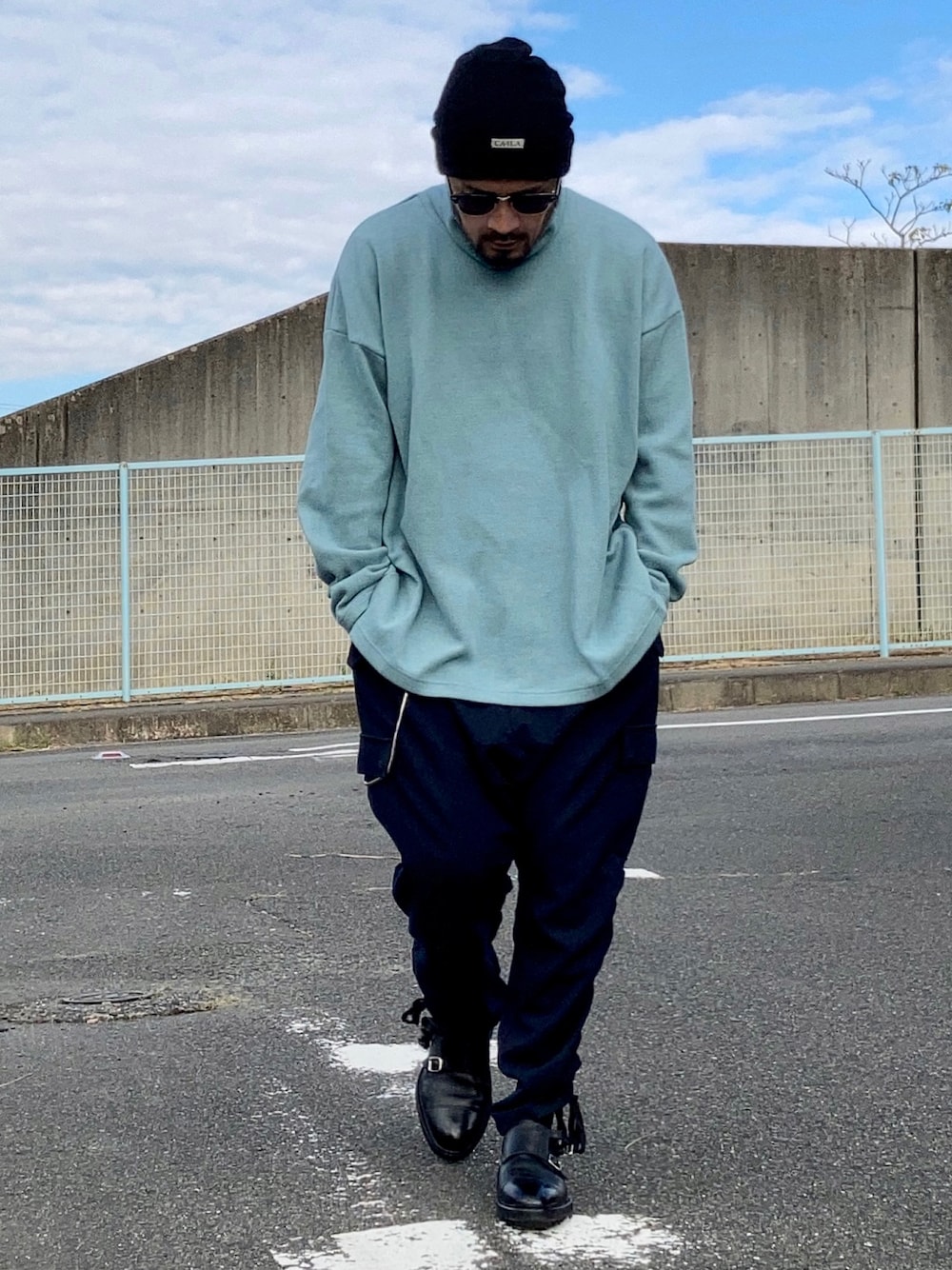 11月14日 午前 17/8℃ サルエルパンツ ストリートスタイルですが基本的にシンプルな着こなしなのでシルエットで遊んでいます。 トップスはビッグシルエットでボトムスは足首に向かって強いテーパーが効いたサルエルパンツ。 いわゆるYラインシルエットです。 ただのYにならないのはサルエルのデザインに尽きます。 ここが差別化ポイントです。 出かける時はコットン素材の大きなショルダーバッグを合わせたいですね。