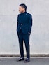2月24日 午後 8/0℃ スーツセットアップ sophnetのセットアップです。 インナーとソックスを同色のネイビーワントーンで合わせ、腕時計とローファーにダークブラウンを使うことでクールすぎないドレススタイルに。 丸メガネとソックスのストライプがワンポイントです。
