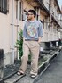 koppaのTシャツ/カットソー「中ピッチボーダーペイントビッグTシャツ」を使ったコーディネート