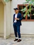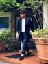 ヨーロピアントラッド ・メタルボタンの紺ブレ ・デニムスラックス ・スエードモンクストラップシューズ トラッドを意識してジャケパンに革靴。 ジャストサイズのIラインシルエットです。 靴とベルトの素材をスエードで揃えてドレス感を持たせつつTシャツとソックスの白で季節感とカジュアルさを表現。 キャップとメガネで装飾して完成です。