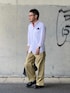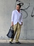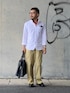 6月8日 午後 26/17℃ 白シャツ×ベージュチノパン オックスフォードシャツとチノパンという普通の格好ですがチノパンをワイドにしてAラインシルエットにまとめました。 アクセサリー多めです。
