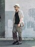 6月25日 朝 32/35℃ 麦わら帽子 まだ6月なのにこの気温! 外出時の帽子は必須ですね。 この麦わらは洗濯機で丸洗いしているので型崩れしているのですがそれがかえって味わいになってます。 初めから麦わらをかぶることを意識したコロニアルカラーで配色しました。 暑さ対策でシルエットはゆったり目で革靴はメッシュ仕様です。