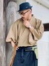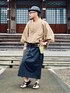 7月17日 朝 31/23℃ 大好きな和装!浴衣! TROVEの和服ライン「和robe」浴衣。 ぱっと見は袴にも見えますが上半分がベージュで下半分がブラックのバイカラーになっている浴衣です。 元から裾丈が短めのデザインで純粋な浴衣と比べるとシルエットが微妙に洋服っぽいのでカジュアルに着用可能です。 早速ウエストバッグを巻いて遊んでしまいました。 普通の浴衣は手首とくるぶしが見えるくらいの長さですよね。 和robeは袖も着丈も短いのでビッグシルエットのTシャツをクロップドワイドパンツにハイウエストでタックインしたような感覚です。 そう考えるともっと思い切り洋装側に振っても面白そうです。 次回試してみよう。 今日の着こなしのポイントは帯の位置。 腰骨から2-3cm下げるだけでこなれ感が出せますのでご参考まで。