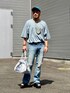 ウッドネックレスが主役 Tシャツとジーンズとサンダルというちょっと手抜きなスタイリングで恐縮ですがネックレス効果を見せたいと思い投稿しました。 ありふれたスタイルですが一応はトレンドを意識しています。 Tシャツはビッグシルエット、 ジーンズはフレア、 サンダルは厚底。 とは言えこれらも今や当たり前になっているので新鮮味はほとんどありません。 そこで、木製のネックレスです。 これがあるとないではインパクトが段違いです。