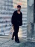 韓国スタイル 最近は韓国ブランドもチェック中。 定番かつ安定のオールブラック。 ベルトのバックルとトートバッグで明るさを。 ◆G.O.Cのスラックス 落ち感のあるワイドフレアパンツは足の動きによってシルエットが大きく変化する。 面白いので一度お試しを。