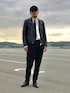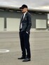 9月25日 朝 18℃(28/17) スラックスコーデ タイドアップしたドレススタイルにバイカーズジャケットとキャップでドレスダウンした秋コーディネーション。 タフネスとインテリジェンスの融合。 高級ウールの艶が美しい黒スラックスは男の必須アイテム。 一本は持っていたい。 なおネクタイは真っ黒だが冠婚葬祭用ではなく厚手で艶のあるファッションアイテム。