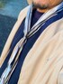 10月15日 朝 18℃(27/17) スカーフアレンジ コットンのロンTとワークパンツのカジュアルアップに。 棒状のシルクスカーフなので限りなくネクタイに近い。 スカーフリングを使うとよりきれいに見せることができて便利。 普段はスカーフをこれほど露骨に見せる着こなしはしないがこういうパターンもあるということのご参考まで。