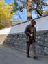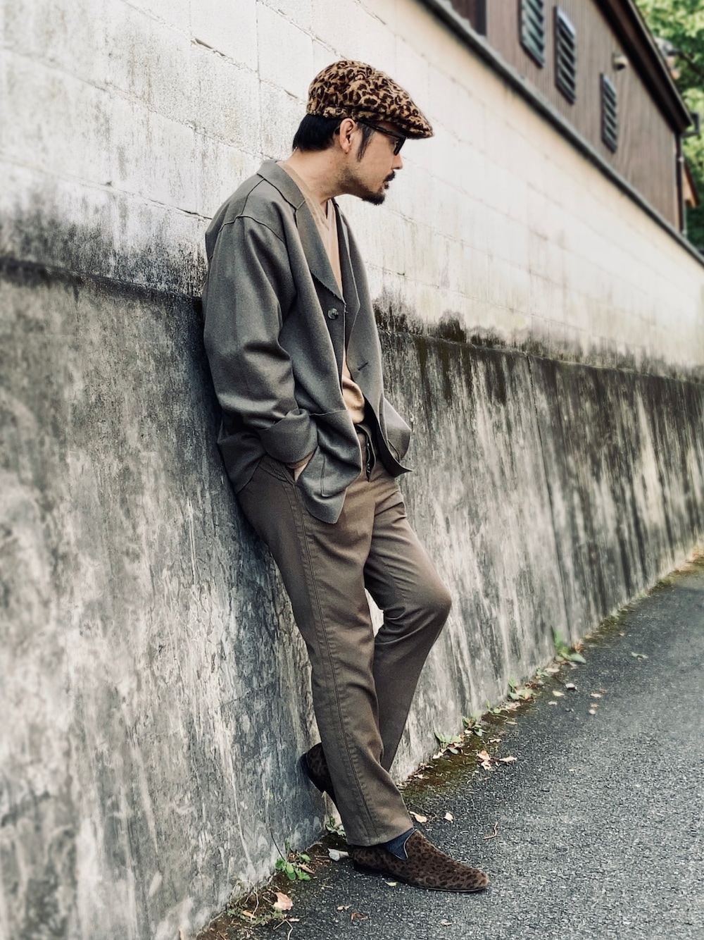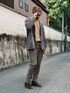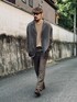城下町の風情を残す街並みに溶け込むアースカラー。 ドレススタイルにカーキ・オリーブ・ブラウンを取り入れ抜け感を演出。 各色のトーンを近似させると色相に関わらず綺麗にまとまりやすい。 服好きの間ではワイドパンツ以外はオシャレにあらず的な風潮も見受けられるが実に勿体無い。 今回のような細身のパンツはトレンドではないかもしれないが定番ならではの安定感があり特にシルエットを作りやすい。 トレンドアイテムを使うのはこの後の話と思う。