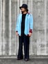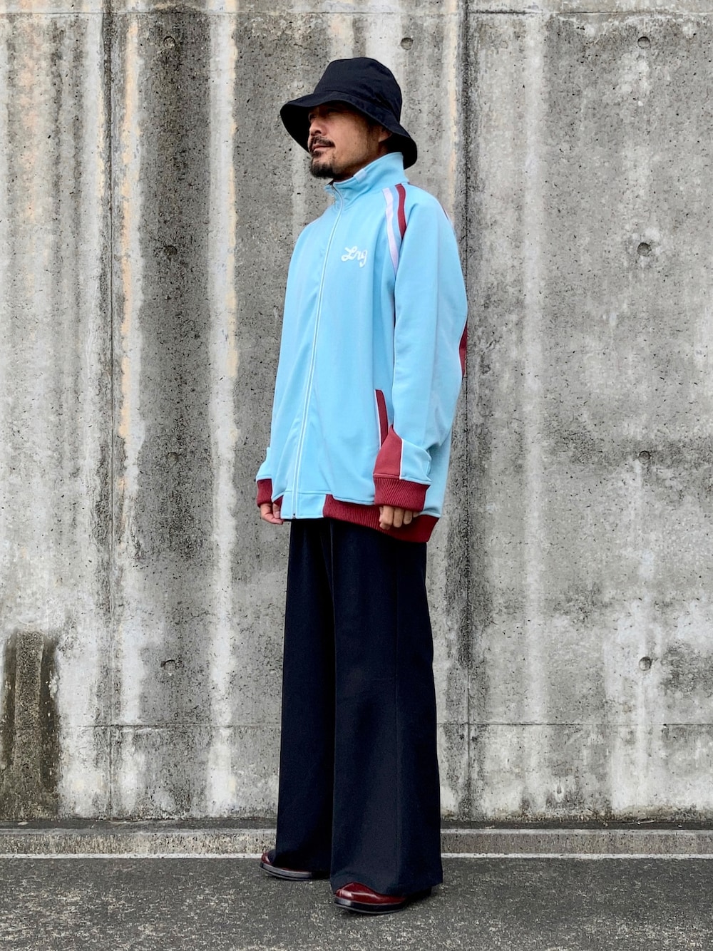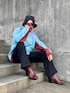 11月中旬 昼 16℃(16/8) ストリートファッション 大きめサイズのトップスにワイドスラックス。 ブーツで控えめに色を拾う。 明るい青を使っているので他の服は暗い色にして落ち着かせてみた。