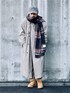 11月下旬 午前 16℃(18/9) 安く簡単なオシャレ 愛猫を連れて動物病院へ行ったのでH&Mのスウェットと昔のユニクロのシャカシャカ暖パンという超部屋着。 でもこれに古着のロングコートを羽織れば簡単にオシャレに見える。 ポイントは素材感のマッチング。 使い込まれた部屋着に合わせてコートも経年変化したものを選ぶこと。 例えハイクラスのブランドでも素材感が合わないとチグハグな感じになり雰囲気が出ない。 なのでやはり古着が最適。 ロンドンフォグのコートは1万円以下で簡単に手に入るのでおすすめ。 写真のコートはベルト欠品のため格安だったのでベルトループを取り払ってトレンチとタイロッケンの中間的なデザインとして使っている。 ただこのままでも悪くはないが更なるオシャレを目指すなら少し小物を追加したくなる。 そんな時にイノウエブラザーズの大判ストールが活躍する。 マルチカラーなので靴や帽子の色の選択肢が広がる。 また小顔効果はもちろんだが縦長シルエットでスタイルアップ効果も期待できる。 これらの効果を有効にするにはコートの上に掛けることをお勧めしたい。 艶感や立体感があるのでコーデ全体の高級感が増す。