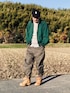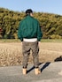 11月下旬 朝 14℃(19/10) 古着のハリントンジャケット ◆ハリントンジャケット(スイングトップ) おそらく80年代の古着だが非常に仕立ても状態も良い。 典型的なバラクータG9デザインでドッグイヤーカラー、チェック柄の裏地、背中のヨークは伝統的なデザイン。 襟の立ちもいい。 アームホールは太めなので厚手セーターを着ても問題ない。 (スラックスとローファーでトラッドスタイルにコーディネートしてもカッコイイ) ◆着こなし 今回は地域の美化清掃のためにアウトドアに適合させたアースカラーの普段着。 コンパクトな短丈アウターにボリューミーなボトムスを合わせて意識的にAラインシルエットを作っている。 トップスはオックスフォードシャツとスウェットをジャストサイズで着用。 一応レイヤードになっているがサイズがジャストでパンツを少し下で穿いているため動いているうちに勝手にこうなるナチュラルレイヤード。 ファストファッションと古着でも「あいつ何か洒落てね?」と思わせたい。 本来ならトラディショナルなアイテムなのでタイドアップしてスラックスとローファーでまとめたいところ。 (着ていくシーンがないがいつか試したい)