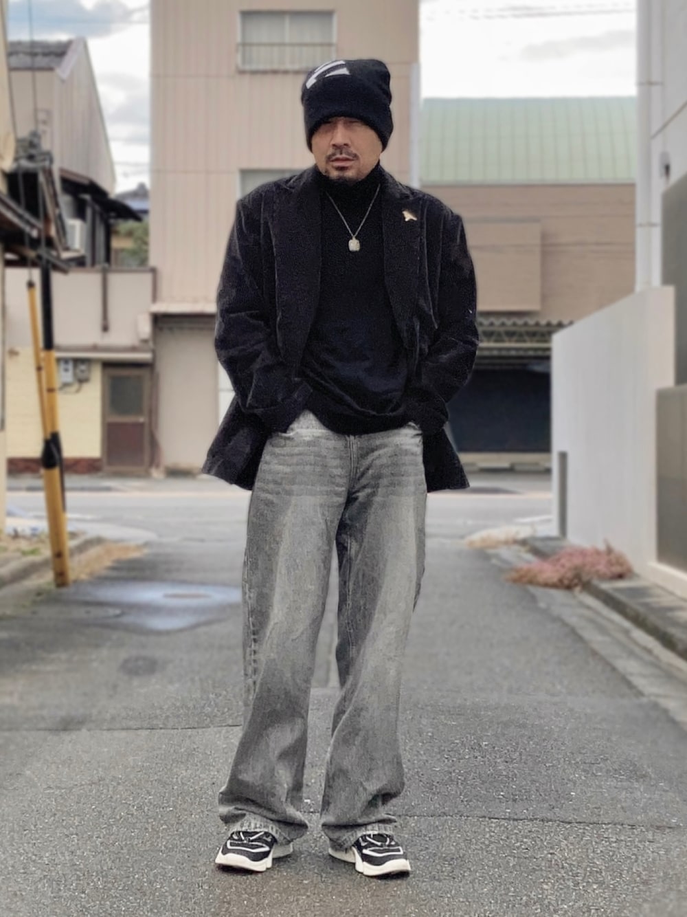 12月下旬 午後 7℃(10/3) モノトーン 有彩色を入れないことを意識してジャンルレスでコーディネート。 深い意味はなく単にモノトーンでまとめたい気分だった。 とにかくコーデュロイのダブルブレストにクッションを入れたバギーと厚底でラフにスタイリング。 シルエットまでラフになってしまったのが反省点。 インナーには自分の定番中の定番uniqloメリノウールニットを着ている。 おそらく全部で20枚くらい持っている。 薄くて収納効率がいい上にオンオフ兼用で使えるので何枚あっても困らない。
