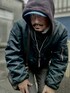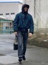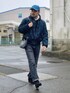 1月中旬 午前 10℃(12/7) MA-1ワークミリタリー 小雨だったのでナイロンジャケットとナイロンキャップ、フーディ、スエードブーツで外出。 ◆着こなし 上はワンサイズ大きく着ているのでストレートジーンズとの組み合わせでYラインシルエットでスタイリング。 ◆ビンテージのMA-1 (ALPHA製) 使い込まれたナイロンの質感はビンテージならでは。 ワンサイズ大きめを着ているのでデザイン上どうしても肩が張る。 気にするほどもないがこれを解消したいならフードやストールなどで首から肩のラインを緩やかにすると馴染ませやすい。