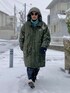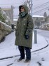 1月25日 昼 -1℃(1/-5) 雪の日コーデ 積雪は街の雰囲気を一変させる。 自然の吸音材が無音無彩色の世界を作り出す。 そうだ、WEARの撮影しよう。 コートの中綿はポリエステルなのでダウンほどの暖かさはない。 表生地はナイロンだが薄手で撥水効果もない。 ミトングローブも薄手で保温効果は低い。 しかし足元さえスノーブーツで保護すればこのくらいの気候ならこの格好で全く問題ない。 ◆着こなし 機能優先だがオーバーサイズのコートを着れば大体何を合わせてもYラインシルエットになるので安心。 首元の保温とワンポイントで色味を加える目的でタートルネックを折り返さずに着用している。