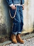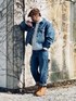 2月下旬 7℃(9/1) イエローブーツコーデ 急にティンバーランドのブーツを履きたくなった。 ドレススタイルのハズシではなくストリートスタイルでもなく、やはり男が匂うワークスタイルでw ブーツの靴紐を上の方まで通した。 ワークブーツにしては細身でスタイリッシュ。 裾をロールアップしてブーツを見せたい。 シルエットを整えるためジーンズを下で穿きデニムジャケットはやや襟を抜いて着用。 ウッドネックレスをリメイクしてウォレットチェーンとブレスレットに変更。 やや長いので改善の余地あり。